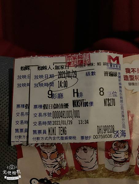 1/29日親愛的忙完公司的東西後稍稍跑來淡水找我討論一下跑去美麗新影城看蜘蛛人無家日看電影是我很喜歡的悠閒時光很放鬆很自在跟寶寶一同欣賞但也不知不覺睡著睡著不是代表無聊而是太放鬆導致